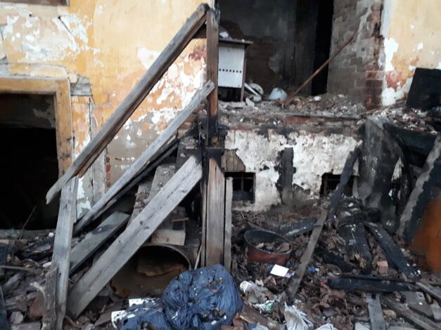 Most ez a kép fogadja az arra járókat. Az egykor lakóinak biztonságot nyújtó otthont ma már életveszélyes megközelíteni is, nemhogy bemenni az épületbe, hiszen, ki tudja, a falak megviselt maradványai még meddig bírják.
