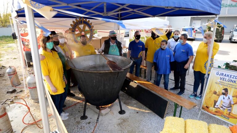 Ma este 18 órakor 1000 adag gulyásleves rotyogott egy 500 literes bográcsban a Szegedi Sütödék Napos úti parkolójában. A hamisíthatatlan magyaros ízek a Szent-Györgyi Albert Rotary Club tagjainak jóvoltából kerülhettek a tányérokba, akik ezzel az ínycsiklandozó étellel mondtak köszönetet az SZTE Járvány Ellátó Központ és a Mentőszolgálat munkatársainak a járvány idején nyújtott áldozatos munkájukért és … Bővebben: 1000 adag gulyáslevest készített a szegedi Rotary Club az SZTE Járvány Ellátó Központ és a Mentőszolgálat munkatársainak