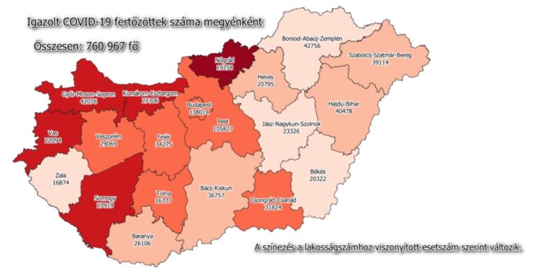 Eddig regisztrált fertőzöttek száma, országosan: 760 967 fő