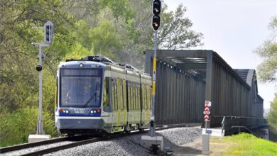 Nagysebességű tram train futópróbát tartottak ma délután Szeged-Rókus és Hódmezővásárhely között. A Stadler több, mint hetven tonnás, harminchét méter hosszú, 216 férőhelyes, 003-as pályaszámú vasútvillamosa két hete kamionon érkezett meg Valenciából. Így nézett ki a nagysebességű futópróba a vásárhelyi állomáson: …a Népkert után: …és az algyői Tisza-hídon: Fotók: MTI