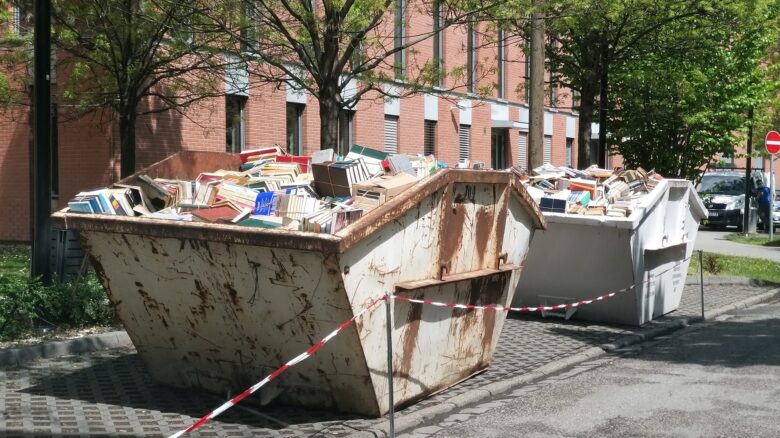 Szomorú vég: konténerekbe pakolták a TIK könyvtárából leselejtezett könyveket (frissítve)