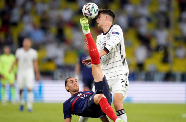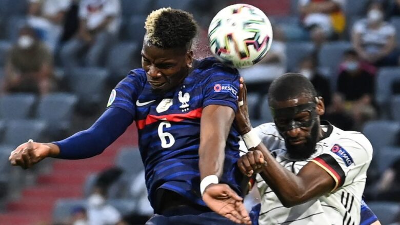 A világbajnoki címvédő francia válogatott 1-0-ra legyőzte a társházigazda németeket a részben budapesti rendezésű labdarúgó Európa-bajnokság magyarokat is felvonultató F csoportjának keddi összecsapásán, a müncheni Allianz Arénában.