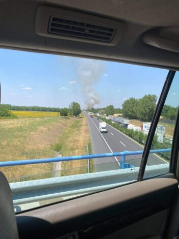 Mint írják, ötszáz négyzetméteren a sztráda melletti erdőre is átterjedtek a lángok, amelyeket oltanak az egységek. Az Utinform tájékoztatása szerint a forgalom csak a belső sávon halad, 2-3 km-es a torlódás. Az ellenkező, Röszke irányába vezető oldalon, Kecskemét térségében javítják a burkolatot. A 90-es km-nél csak egy sáv járható, torlódásra lehet ott is készülni.