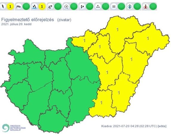 AZ OMSZ szerint az elsődleges veszélyforrást a villámlás jelenti, emellett esetenként szélerősödés, jégeső előfordulhat. Intenzív záporokból, zivatarokból rövid idő alatt 25-30 mm-t meghaladó csapadék hullhat.