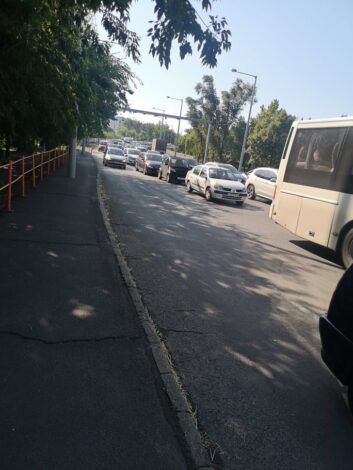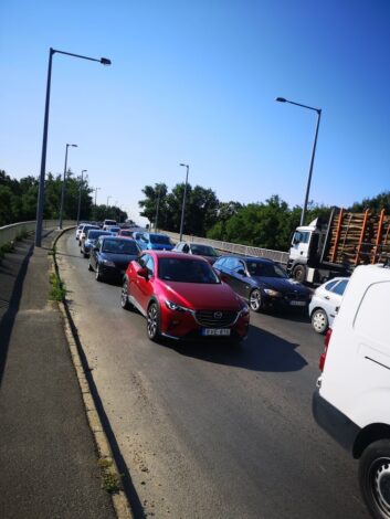 Gyakorlatilag hídfőtől hídfőig áll a sor. Ez pedig augusztus 22-ig valószínűleg így is marad, ugyanis előre láthatólag addig tartanak a munkák a Belvárosi hídnál.