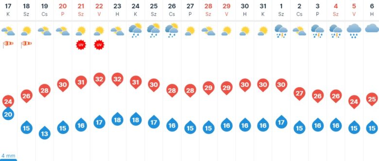 Végre megszűnik a kánikula, viszont hajnalban sem fogunk fázni, 20-22 fokot mérhetünk, majd napközben a hidegfront után 22-28 fok között alakul a hőmérséklet.
