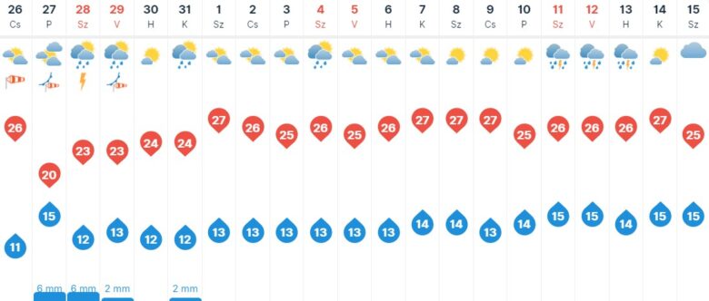 Hajnalban csupán 11-15 fokra számíthatunk, majd napközben már akár 25 fokot is mérhetünk Szegeden. Pénteken még hidegebb lesz a front miatt, ezen a napon a jelenlegi előrejelzések szerint csak maximum 20 fokig melegszik fel a levegő és még egy kis eső is kilátásban van.