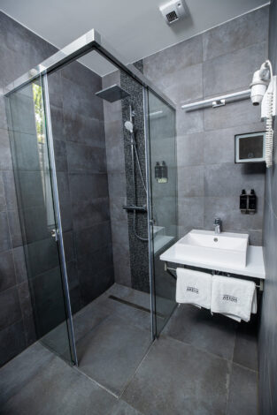 Profi, egyben korrekt a hotel teljesen akadálymentes kialakítása. Az épület földszintes, a bejutáshoz nem kell lépcsőn rodeóznia annak, aki mozgássérültként érkezik ide. Sőt, van egy külön akadálymentes óriáskabin is, extra méretű füdőszobával és tolókocsi-tárolóval. Nagy piros pont érte, akinek a családjában vagy baráti körében van mozgássérült ember, tudja, miről írunk.