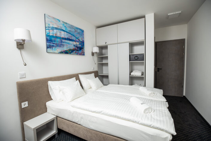 Akár lesz negyedik hullám, akár nem, a bejutási rendszer roppant szimpatikus: nincs kontaktus (és fertőzési veszély), foglaláskor kapsz egy kódot, ezzel először a kapu enged be a zárt, udvari parkolóba, ezt követően a főbejárati automata, majd a szobád ajtaja. Apropó, nevezzük inkább kabinnak, máris elmagyarázzuk, miért.