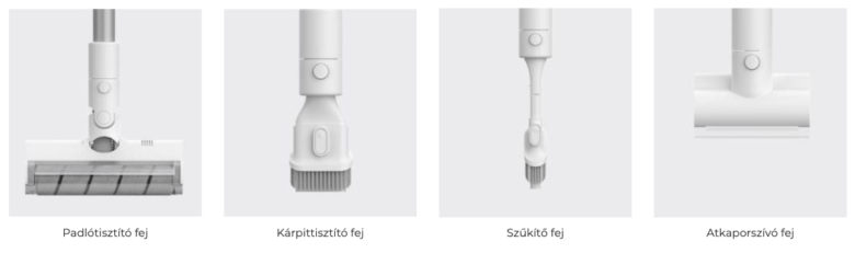A Xiaomi MI porszívóját 4 féle különböző fejjel kapod meg, alkalmazkodva az eltérő takarítási feladatokhoz: