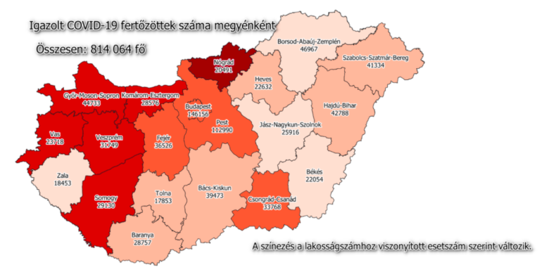 - 814 064-re nőtt a Magyarországon azonosított fertőzöttek száma, az elhunytak száma 30 077-re, a gyógyultaké 778 401-re emelkedett.
