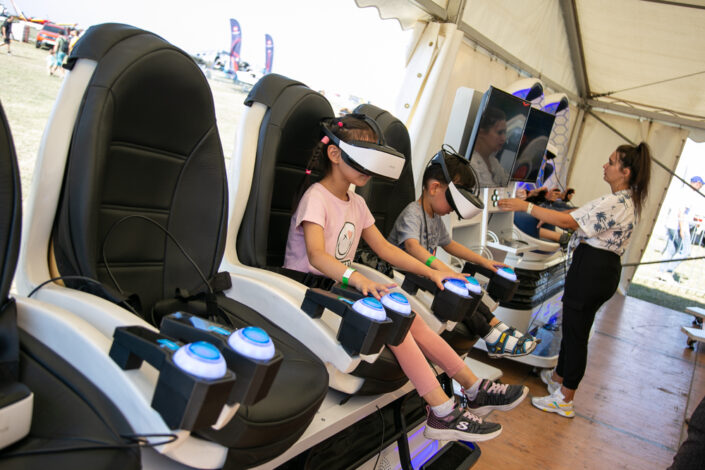 Nyilván, egy légishow a fenti eseményekről szól, ettől függetlenül volt ez meg az a földön is, a bejárattól nem messze egy kisebb oldtimer-kiállítás várt bennünket, tőle pár méterre pedig egy egész klassz helikopter-szimulátor, megspékelve egy 3D-4D játékparkkal:
