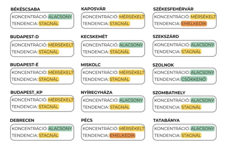 Mint írták, a 37. héten a szennyvízminták koronavírus-koncentrációja országos átlagot tekintve továbbra is lassú emelkedést mutat. A vizsgált települések zömét stagnáló tendencia jellemzi, azonban Pécsett és Székesfehérváron növekedés, míg Szolnok esetében csökkenés tapasztalható – tették hozzá. Az NNK tájékoztatása szerint 13 városban továbbra is alacsony, kilenc mintavételi helyen pedig mérsékelt a koncentráció, míg Szegeden egyelőre stagnál.
