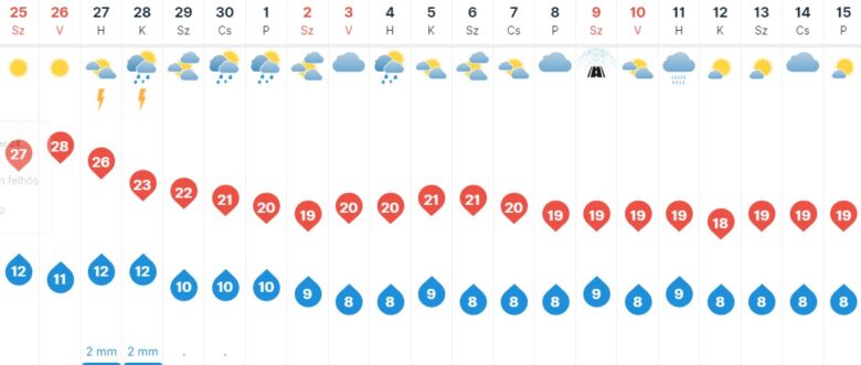 Az előttünk álló napokban csapadék sem várható és a nagy területen erős északnyugati szél is estére már fokozatosan veszít erejéből. A legalacsonyabb éjszakai hőmérséklet általában 5 és 10 fok között alakul, de a szélcsendes, fagyzugos részeken hidegebb, a belvárosi és vízparti tájakon pedig enyhébb lehet az idő. A legmagasabb nappali hőmérséklet szombaton 22 és 27 fok között valószínű.