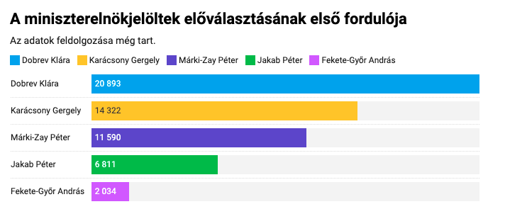 - a szavazatok 37,5 százalékát vitte eddig a DK miniszterelnök-jelöltje,