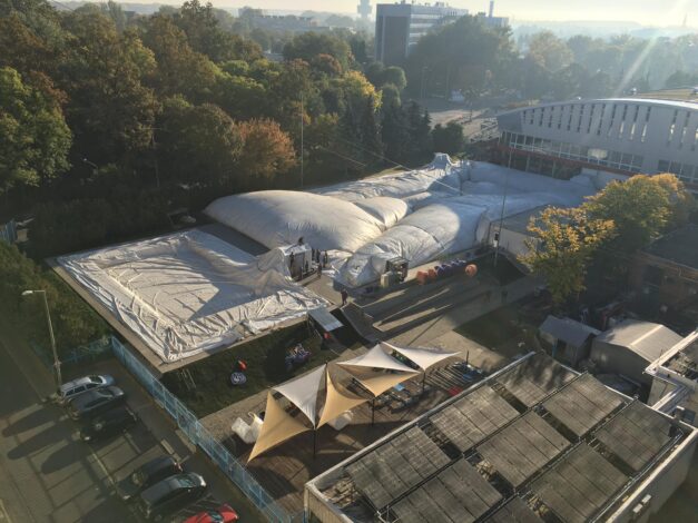 Az ősz beköszöntével búcsút inthetünk a szabadtéri fürdőzésnek is Szegeden, és ahogy ez lenni szokott idén is vastag paplan alá, vagyis téli köntösbe öltözött a Városi Sportuszoda szabadtéri medencéje. A sátorfedési munkálatokat Brigi olvasónk meg is örökítette (hálásan köszönjük), és fotókkal lepett meg bennünket ma.