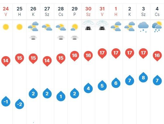 Hajnalban még akár fagyhat is, és köd is előfordulhat, de a délutánra ígért 11-15 °C kárpótolhat ezért a reggeli rosszkedvű időjárásért.