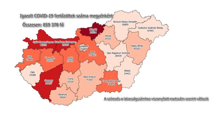 Csütörtök virradóra 4039 új fertőzöttet igazoltak hazánkban, ezzel a járvány kezdete óta összesen 859 378 főre nőtt a beazonosított fertőzöttek száma.