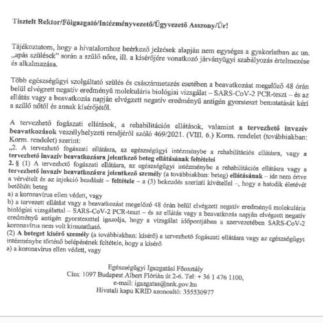 November 1-től életbe lépett a látogatási tilalom az ország valamennyi fekvőbeteg szakellátást nyújtó intézményében, így az SZTE Szent-Györgyi Albert Klinikai Központ intézményeiben is, viszont vannak kivételek – erre a napokban Müller Cecília is ráerősített. Az Index által idézett tisztiorvosi dokumentum szerint: