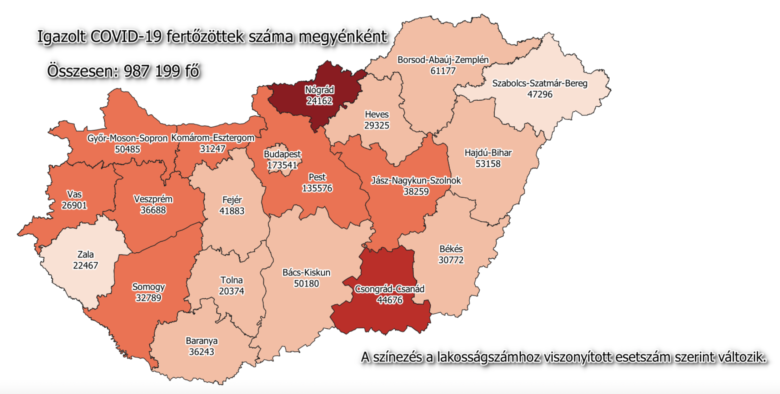 - 10 767 új fertőzöttet igazoltak, ezzel a járvány kezdete óta összesen 987 199 főre nőtt a beazonosított fertőzöttek száma.