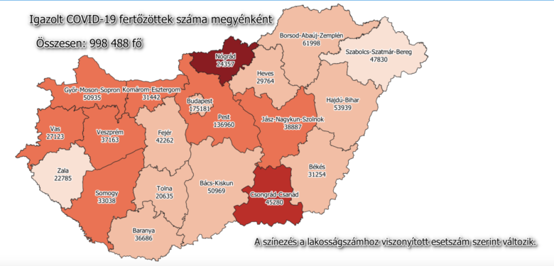 - 11 289 új fertőzöttet igazoltak, ezzel a járvány kezdete óta összesen 998 488 főre nőtt a beazonosított fertőzöttek száma.