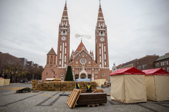 Szeged365 fotóriport: már épül-szépül a Szegedi Karácsonyi Hetek Dóm téri helyszíne