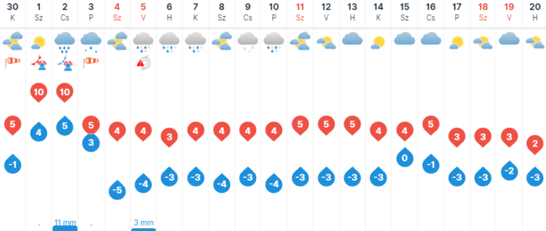 Ami jó hír, hogy a szerda már kicsit barátságosabb lesz: felszakadozik a felhőzet és végre kisüthet a nap. Sőt, a nappali csúcshőmérséklet is 10 fok körül alakul. Számottevő változásra egyébként csak a jövő héten számíthatunk, mert ekkor már a hó is befigyelhet, addig viszont csak esőt kapunk Szegeden.
