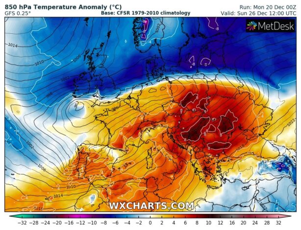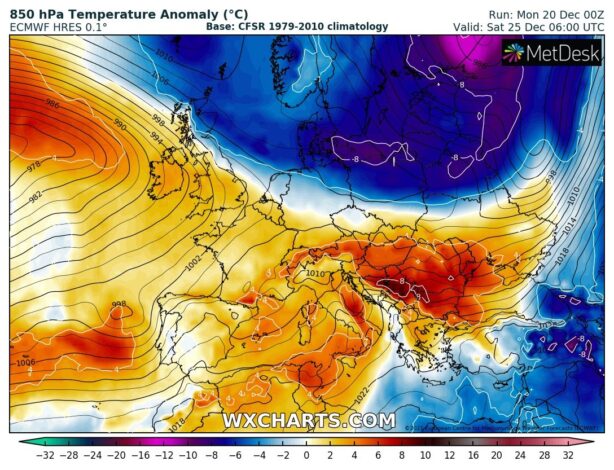 Lényegében egy hőhullám éri el a térséget karácsonyra, ami magát a fogalmat illeti, persze nem lesz extrém meleg, de szignifikáns hőmérsékletemelkedés valószínű.