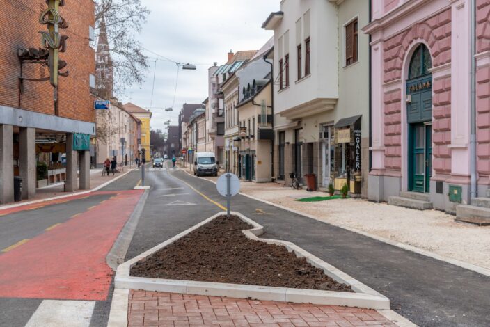 - A Híd utcában az útburkolat teljes egészében elkészült, a járdák közül pedig jelenleg a Deák Ferenc utca és Stefánia közötti szakaszon épül a klinkerburkolat, a Deák Ferenc utca és Széchenyi tér közötti szakaszon pedig 2022 elején készül el az átépített járdaszakasz.