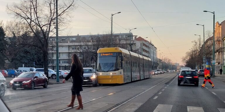 Összedurrant a 2-es villamos és egy autó a Kossuth Lajos sugárúton Szegeden