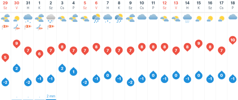 Szombatra már csillapodik a viharos erejű szél Szegeden, így kellemesebb időjárásnak nézünk elébe a hétvége első napján. Egész nap felhős, olykor napos időszakok váltják majd egymást, és szerencsére csapadékra sem kell számítani. Hajnalban -2 és 1 fok között alakulnak az értékek, majd napközben már 5 fokot mérhetünk Szegeden.