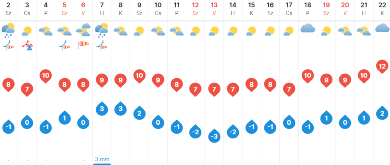 A hét további részében már nyugodt időjárásra számíthatunk Szegeden. Jellemzően egész héten marad a napsütés, amit néha felhők zavarhatnak meg, de jelentős csapadékra és viharos erejű szélre már nem kell számítani. Kellemes, 7-10 fokos melegre készülhetünk Szegeden.