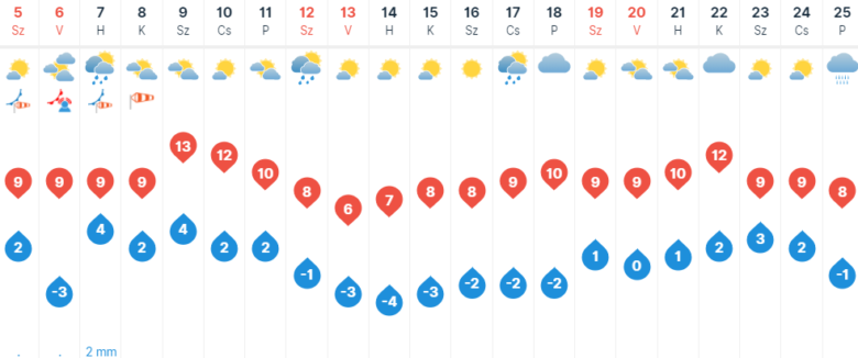 Két nyugis nap után szombatra egy hidegfront hoz szeles időt Szegedre. A nap első felében még számíthatunk kisebb esőre, záporra, délutánra viszont sok napsütés ígérkezik. Az északnyugati szelet többfelé erős, néhol viharos lökések kísérik. Hajnalban 2, napközben 9 fok várható Szegeden.