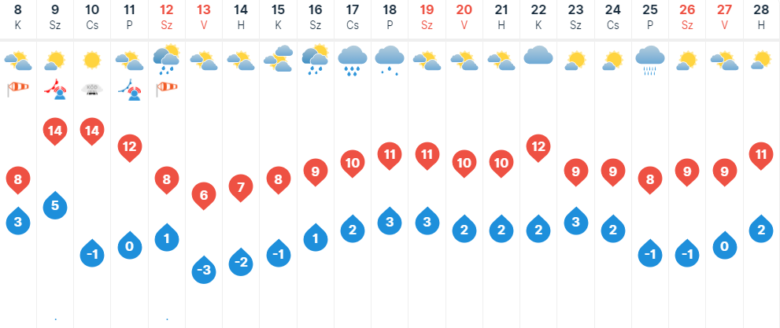Kedden szeles marad az idő Szegeden. Egész nap erős, olykor viharos lökések kísérhetik a nyugati-északnyugati szelet. A nap első felében még számíthatunk némi napsütésre, azonban délutántól egyre jobban megnövekszik majd a felhőzet, viszont csapadékra nincs kilátás. Hajnalban 3, napközben 8 fokot mérhetünk Szegeden.