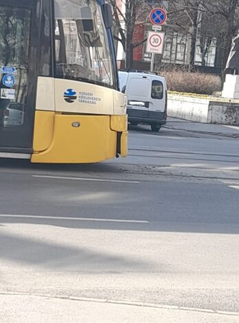 Villamos koccant egy autóssal a Kossuth Lajos sugárúton Szegeden