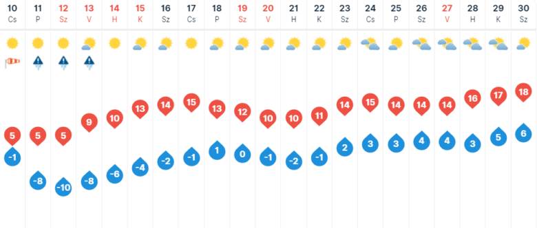 Pénteken is marad a napos, száraz idő és élénk lesz az északkeleti szél is. Fagyos, igazán hideg lesz a hajnal, -8 fokig hűl le a levegő hőmérséklete, majd délután is csak 5 fokot mérhetünk Szegeden.