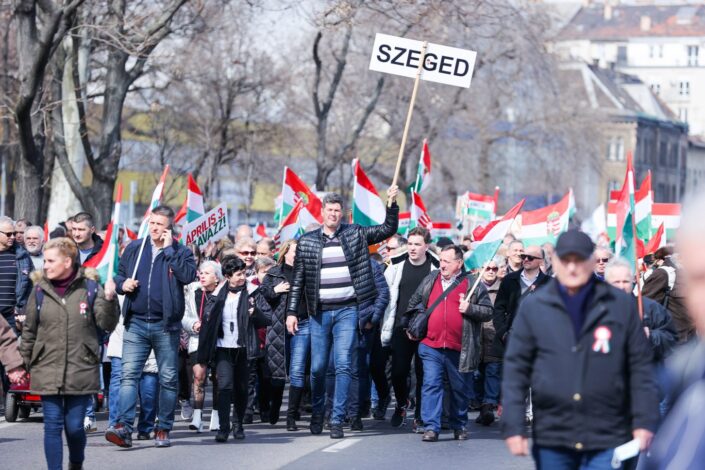 Orbán Viktor kifejtette: ezért támogatják a családokat, “ezért hoztunk létre egymillió új munkahelyet, ezért adóztattuk meg a multikat, csökkentettük a rezsit, és ezért küldtük haza az IMF-et”. “Nem térített el bennünket se árvíz, se migráció, se világjárvány, és azt akarjuk, hogy ne térítsen el ettől se a háború, se a baloldal április 3-án” – hangoztatta a miniszterelnök.