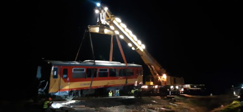 Mindszenten késő estére vasúti daruval emelték vissza a sínekre a kedd reggeli tömegszerencsétlenségben felborult motorkocsit és elvontatták a helyszínről – adta hírül az éjjel a MÁV. A balesetben megrongálódott pályarészt járhatóvá tették, a végleges helyreállításig még sebességkorlátozás lesz érvényes az érintett szakaszon.