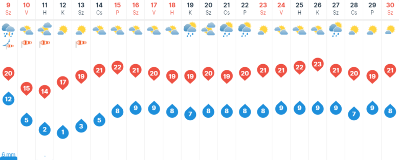 Szombatra egy hidegfront érkezik, emiatt már a hajnali óráktól kezdve várható eső, zápor, esetleg zivatar Szegeden. Kezdetben még a déli-délnyugati szél lesz élénk, erős, majd napközben az északnyugatira forduló szelet sokfelé kísérhetik erős, viharos lökések. A csúcshőmérséklet 20 fok körül alakul majd Szegeden.