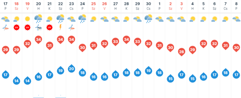 Pénteken változóan napos-felhős időben lehet részünk Szegeden. Az előrejelzések szerint a csütörtök éjjel átrobogó hidegfront hatására a Dunától keletre eső tájakon még pénteken is fordulhatnak záporok, zivatarok. Az északi-észkanyugati szelet élénk, erős, zivatarok környezetében akár viharos lökések is kísérhetik. Hajnalban 12 és 18, délután 25 és 30 fok között alakul a hőmérséklet.