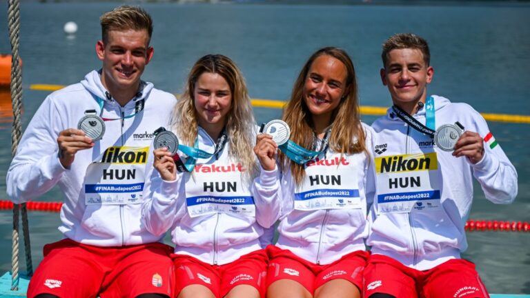 A magyar válogatott ezüstérmet nyert a nyíltvízi úszók csapatversenyében a Lupa-tavon zajló világbajnokság vasárnapi nyitónapján – írja az MTI. A Rohács Réka, a szegedi Olasz Anna, illetve a Betlehem Dávid és Rasovszky Kristóf összeállítású váltó 1:04:43.00 órás eredménnyel végzett a második helyen a németek mögött, az olaszokat célfotóval megelőzve. Mint kiemelték, ez a harmadik magyar érem … Bővebben: Szegedi siker, megvan a harmadik érem a Vizes VB-n: Olasz Annáék ezüstérmet zsebeltek be a nyíltvízi úszók csapatversenyén