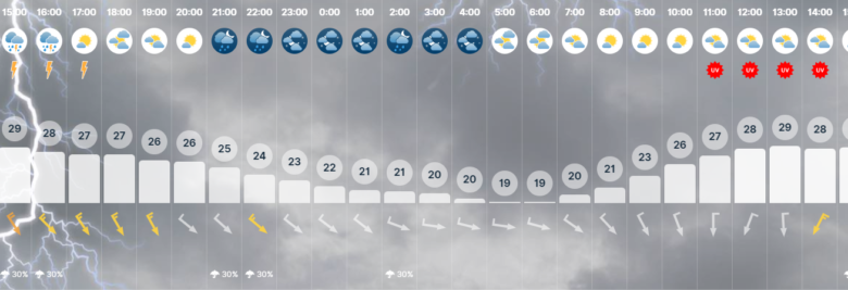 Az előrejelzések szerint a következő egy órában még eshet, tehát egy kis időre talán búcsút inthetünk a kánikulának. Az Időkép pedig azt írja, hogy szerdán sokkal barátságosabb lesz a hőmérséklet, 29 fok lehet csupán Szegeden.