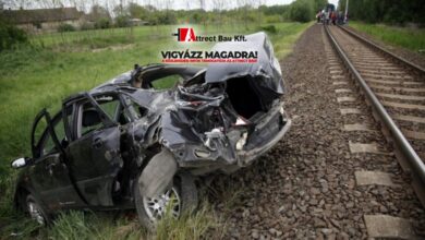 Felborult egy autó a vasúti átjáróban Mártélyon