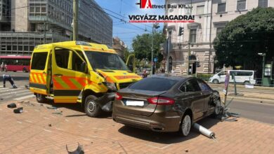 Mentőautóval karambolozott egy személyautó az Anna kútnál (frissítve)