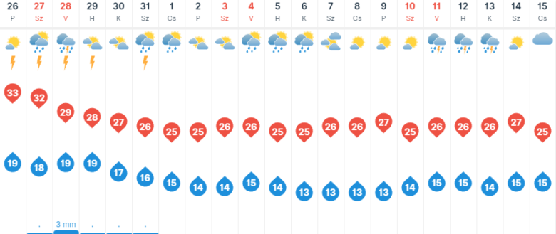 Szombaton is hosszabb napos időszakokra számíthatunk Szegeden, ám egy-egy zápor, esetleg zivatar már kialakulhat. Napközben 28 és 35 fok között alakul a csúcshőmérséklet.