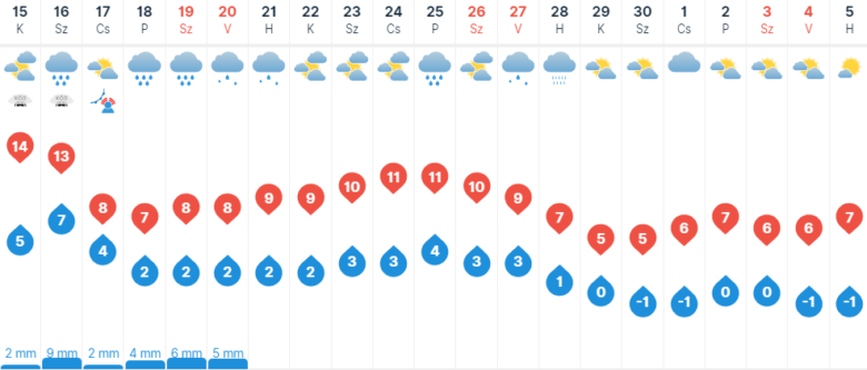 Szerdán is sokfelé marad a szürke, nyirkos idő. Többfelé készülhetünk esőre, délen, így Szegeden is jelentős mennyiség lehullhat. A legmagasabb hőmérséklet 14 fok közrül alakulhat.