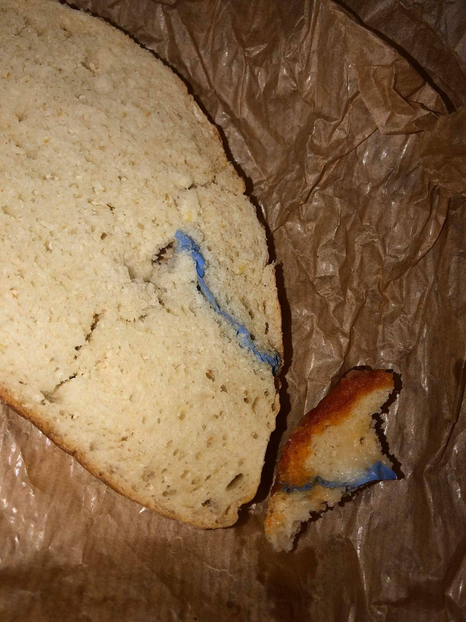 A cég nevét nem írjuk le, minden mást igen. Az eset pár napja történt, mint Peti nevű olvasónk beszámolt róla, egy kék színű gumikesztyűt talált abba a burgonyás cipóba sütve, amit a szóban forgó hipermarketben vásárolt. A “finomságot” nem fogyasztotta el, viszont panaszt tett a multinacionális cég ügyfélszolgálatán, akik előbb azt ajánlották fel, hogy kicserélik egy másik kenyérre, majd, amikor a szegedi férfi nem akart élni a lehetőséggel, felajánlottak neki egy