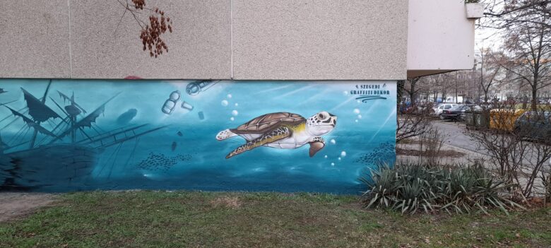 Ismét elővette a festőpalettát és alkotásba fogott a szegediek által jól ismert graffitiművész, azaz Mone. Korábban a Gyöngyvirág, majd a Nyitra utcában, most pedig Zsitva soron művészkedett Molnár Zsolt. A közösségi oldalára felkerült fotókból kiderült, hogy ezúttal az óceánt vette alapul, így egy cápával, teknőssel és egy elsüllyedt hajóval találkozhat az, aki erre jár Szegeden. … Bővebben: Ismét elővette a festőpalettát és alkotásba fogott Szegeden a graffitiművész, Mone