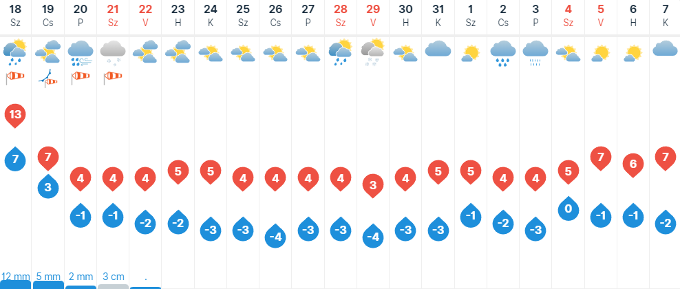 Szerdán felszakadozik a felhőzet, és több órára kisüthet a nap, ugyanakkor elszórtan záporok alakulhatnak ki. Délkeleten, így Szegeden is egy-egy zivatar sem kizárt, az OMSZ elsőfokú riasztást adott ki a vármegyénkre emiatt. Sokfelé erős, néhol viharos lesz a délnyugati szél. A csúcshőmérséklet 13 fok körül alakulhat napközben Szegeden.