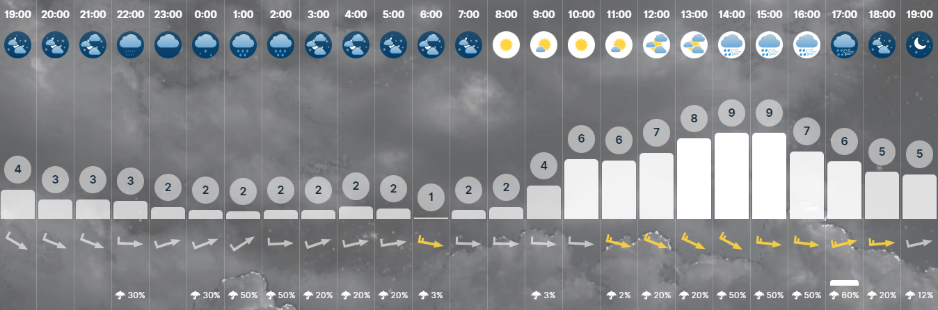 Szerdán a délnyugati országrész kivételével mindenhol megmarad a szeles időjárás, Szegedre élénk légmozgást jósolnak. Az előrejelzések szerint a többször erősen megnövekvő felhőzetből akár kialakulhatnak záporok és hódarazáporok is. Néhol esetleg az ég is megdörrenhet. Hajnalban 1, napközben 9 fokot mérhetünk majd Szegeden.
